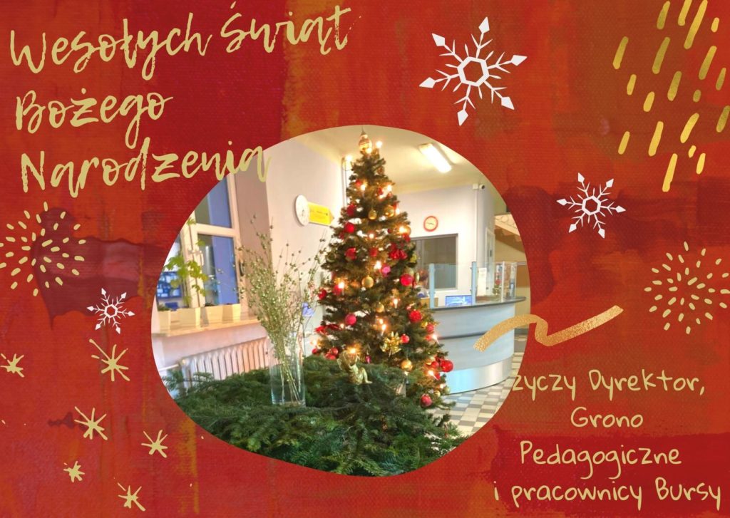 Dyrektor, Grono Pedagogiczne oraz wszyscy pracownicy Bursy Szkolnej Nr 3 w Radomiu składają serdeczne życzenia zdowych i spokojnych Świąt Bożego Narodzenia oraz wszelkiej pomyślności w nadchodzącym Nowym Roku.