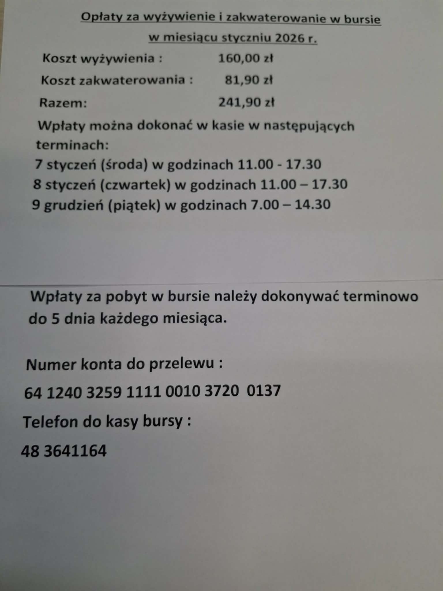 Poniżej informacja o wpłatach za styczeń.