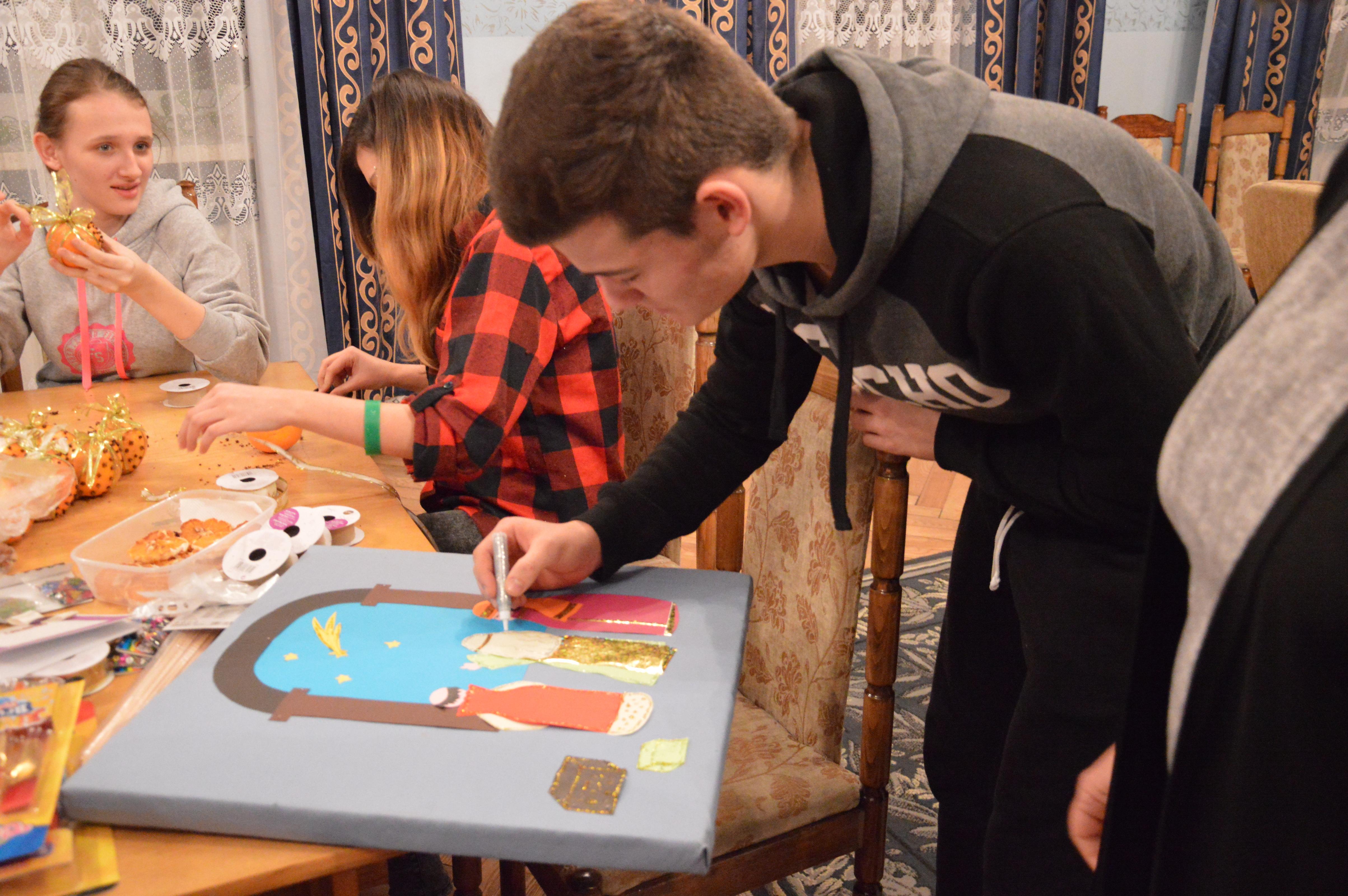 Uczestnicy warsztatów przygotowywali dekoracje bożonarodzeniowe. Wykorzystując różne techniki i rozmaite materiały wykonali kartki świąteczne, bombki, choinki, stroiki i inne ozdoby, słuchając kolęd i rozmawiając o tradycjach wigilijnych.