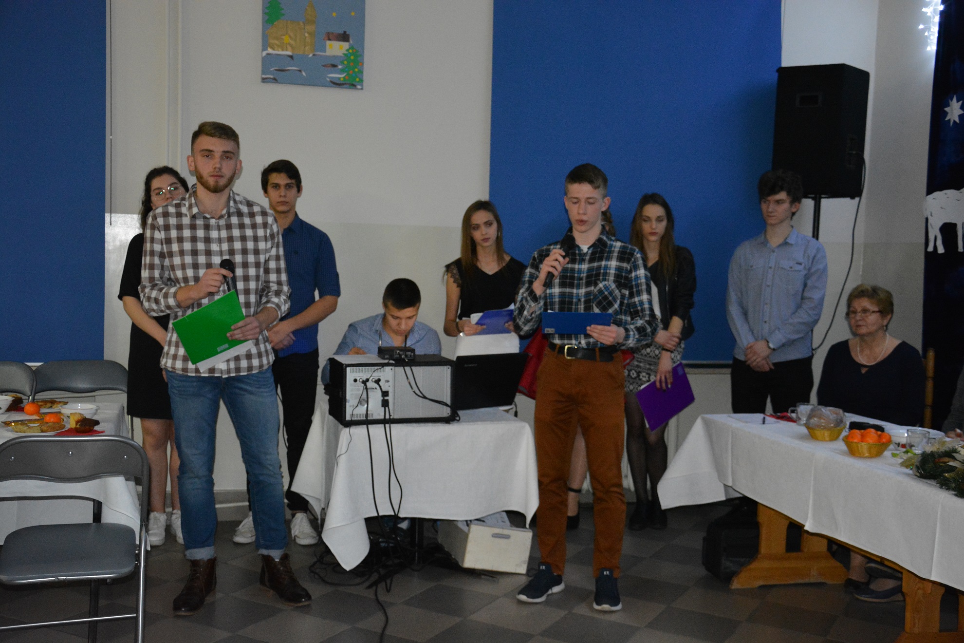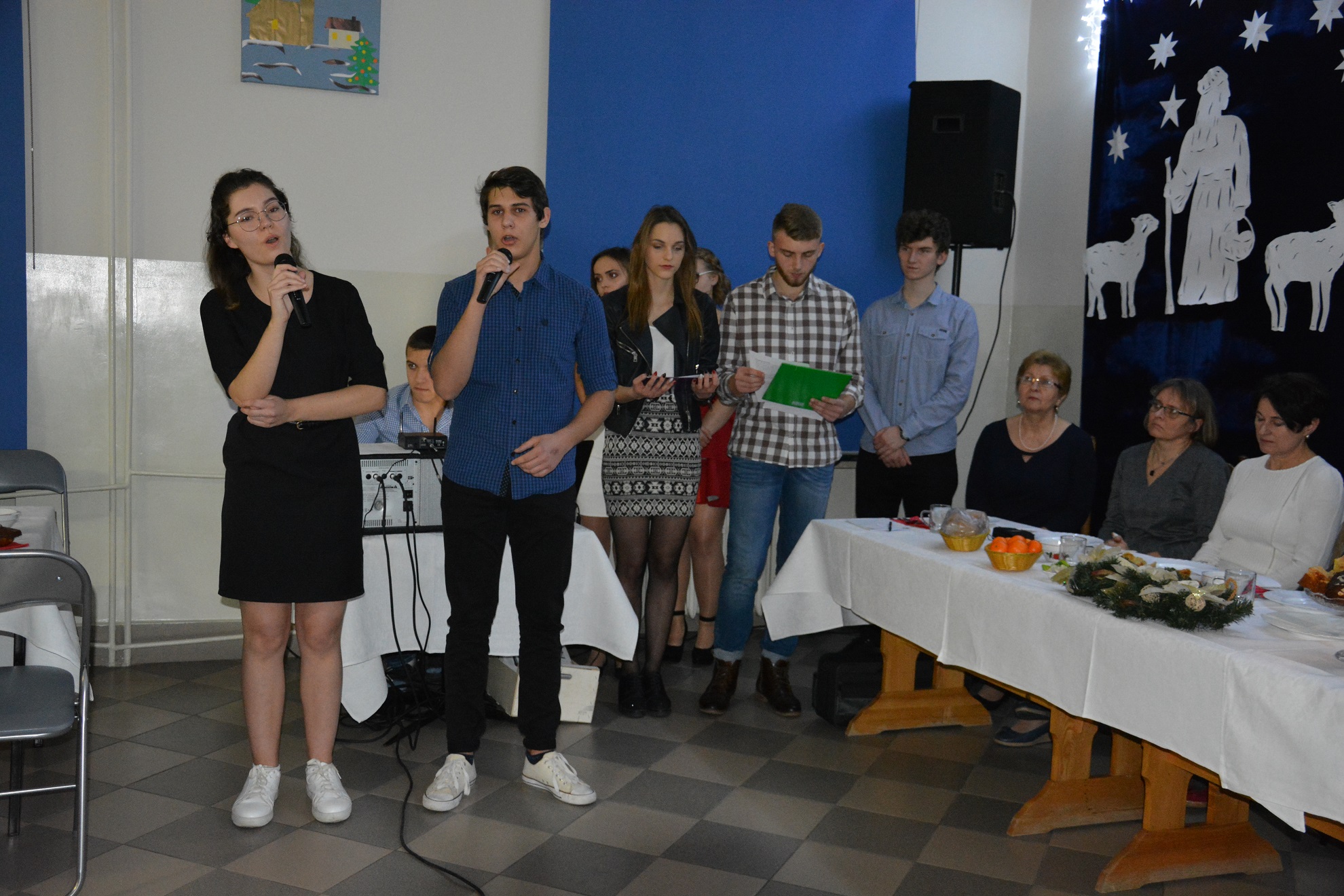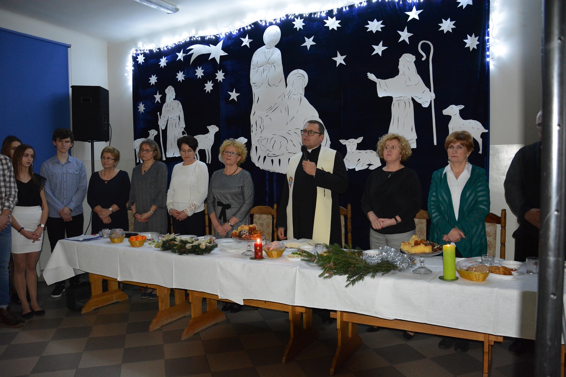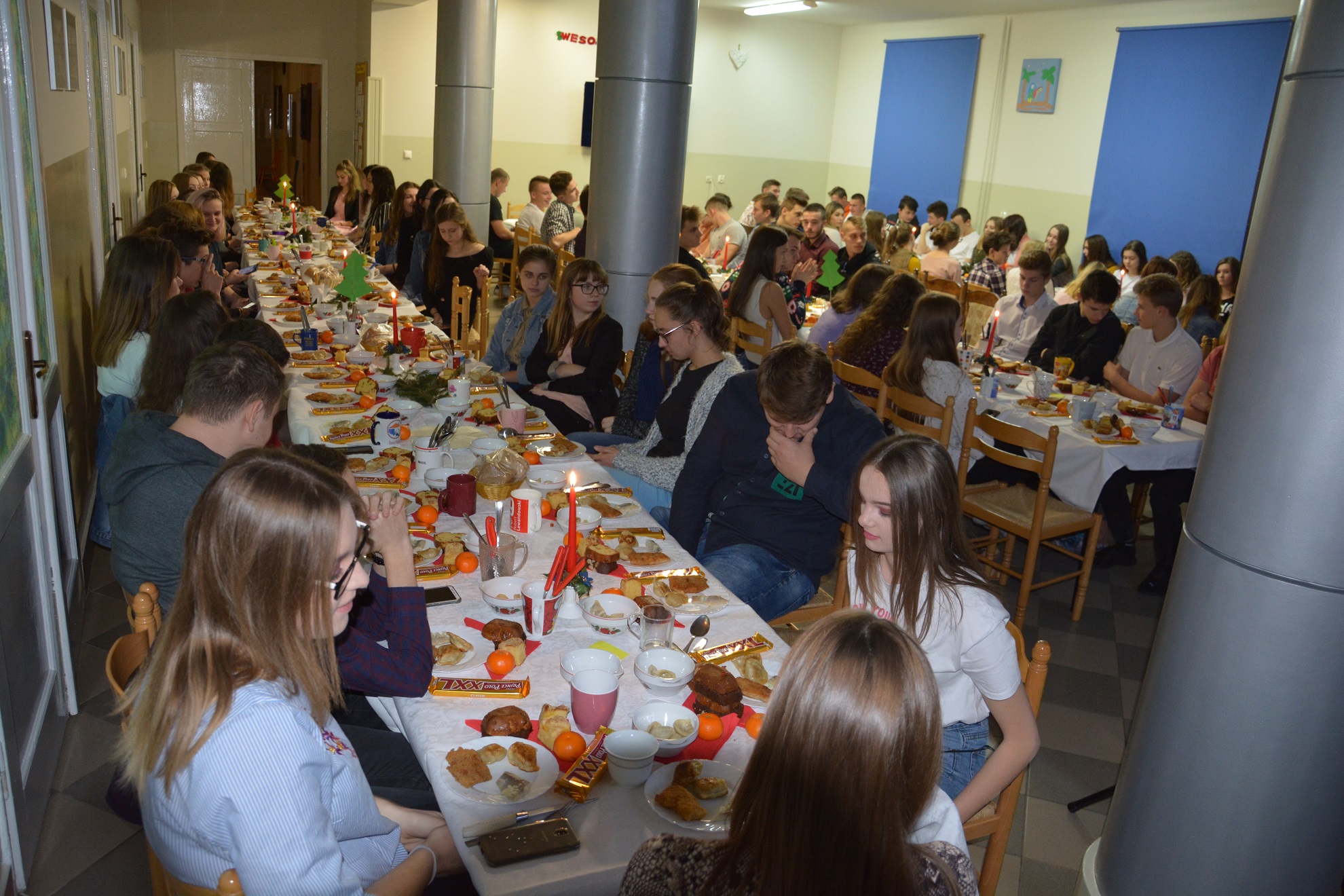 13 grudnia o godz. 18.45 wszyscy wychowankowie przybyli na uroczystą kolację. Wieczór wigilijny rozpoczął się od wysłuchania programu artystycznego wykonanego przez naszą młodzież, który został przygotowany pod kierunkiem wychowawców grupy I i II. Wieczór ten uświetnił swoją obecnością proboszcz parafii Matki Bożej Bolesnej ks. Gabriel Marciniak, który odczytał fragment Ewangelii o narodzeniu Chrystusa oraz wygłosił pasjonującą przemowę o miłości i dobroci do drugiego człowieka.