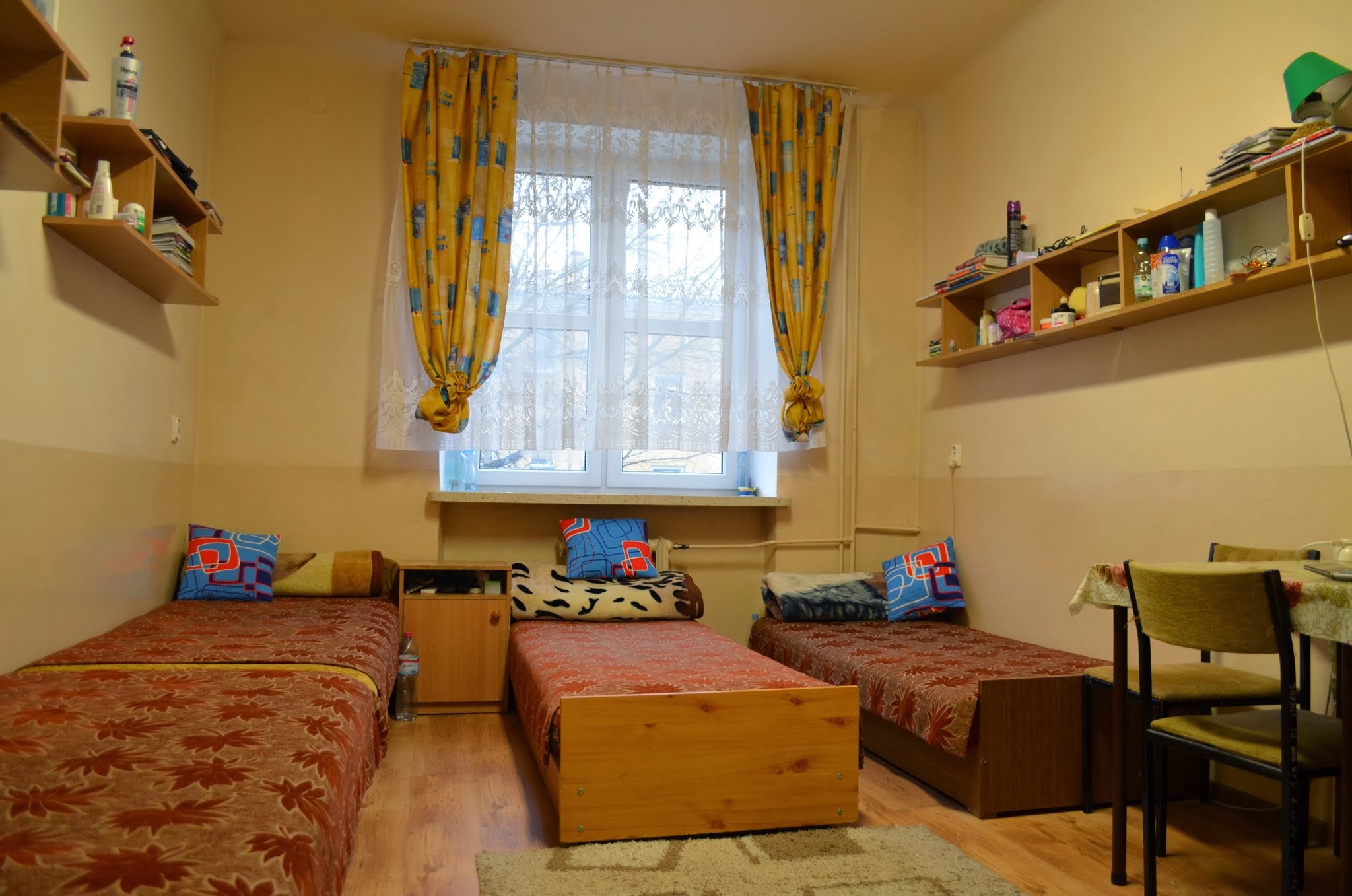 Pokoje są wyposażone w: tapczany, szafy ubraniowe, szafki żywnościowe, stół i krzesła, pościel ( kołdra, poduszka, narzuta, koc oraz bielizna pościelowa ) Dodatkowo, młodzież może korzystać z łącza Wi-fi.